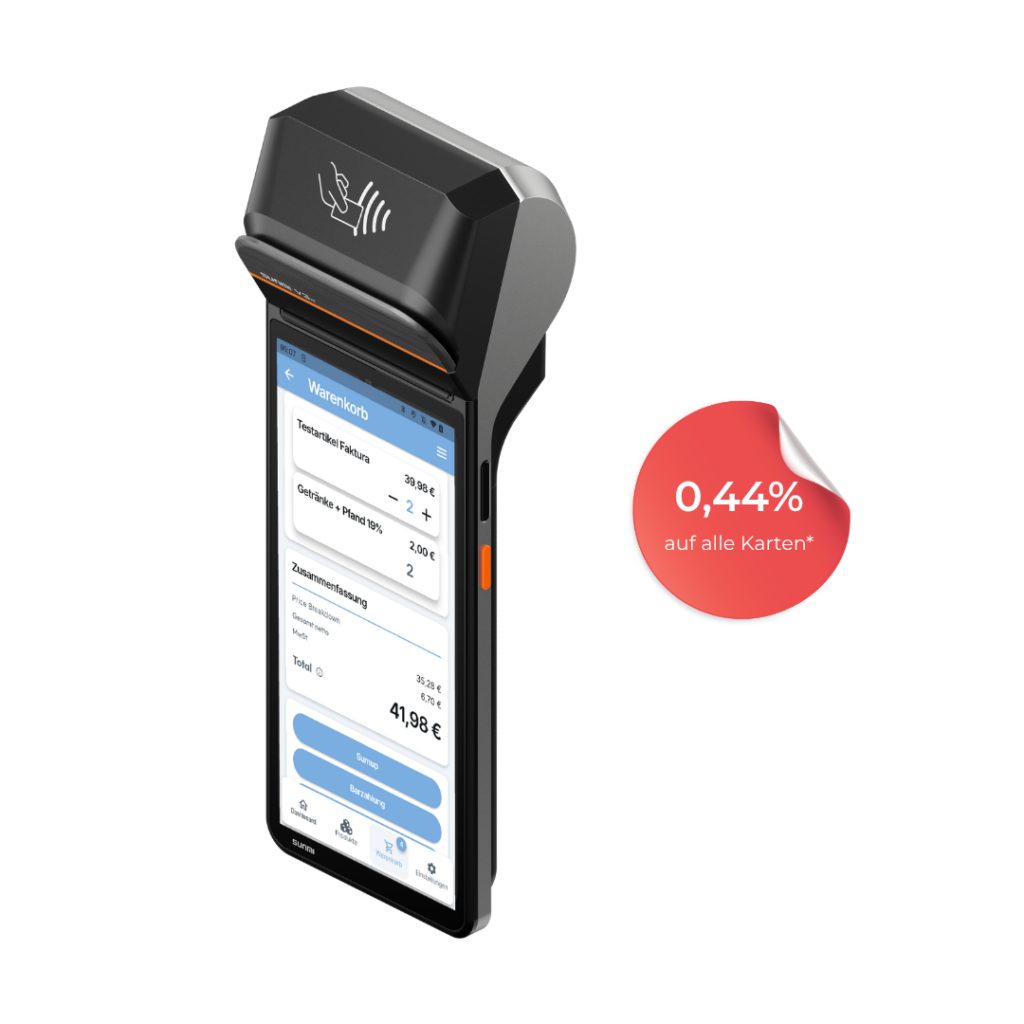 Mit flour Payment profitieren Sie von erstklassigen Konditionen und modernster Technologie. Bezahlungen nehmen Sie wahlweise mit dem CCV Plus Mobile A960-Terminal oder dem Sunmi V3H All-in-One Gerät via Tap-to-Pay entgegen.