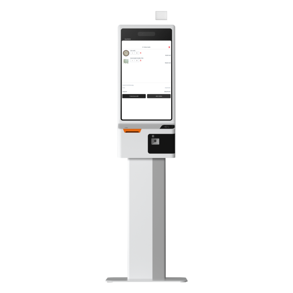 Erleben Sie flexible Selbstbedienungslösungen, die auf Ihre spezifischen Anforderungen zugeschnitten sind, von der schlanken SB-Kasse bis hin zur umfassenden SB-Kassenlösung mit Kiosksystem.